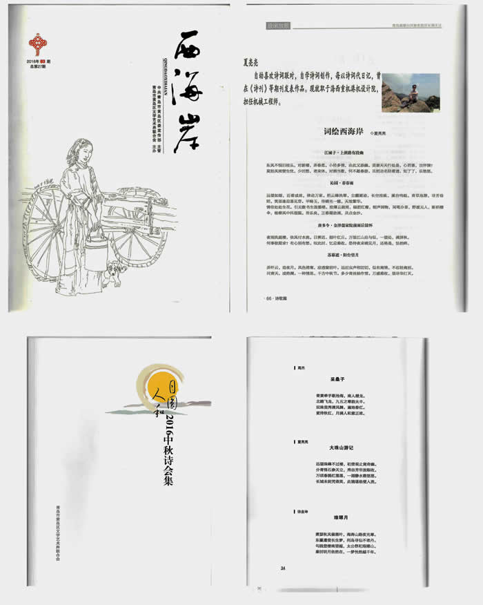 在這場(chǎng)文化盛宴中,我司夏亮亮同志以青島海西重機(jī)技術(shù)中心港口起重機(jī)研究所工程師的身份參與投稿,最終有四首作品入選文聯(lián)《西海岸》雜志,兩首作品入選《月圓人和2016中秋詩(shī)會(huì)集》,并獲邀參加當(dāng)晚的詩(shī)詞品鑒朗誦會(huì)。