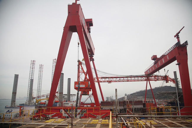 為了保證此次吊裝過程的安全,項目組共進(jìn)行了7次吊裝方案評審,對方案的各個細(xì)節(jié)進(jìn)行了多次討論,提出了多個風(fēng)險源,并對吊點受力等進(jìn)行了充分計算,確保萬無一失。此次吊裝,海西重機運用了1600t龍門吊和300t龍門吊協(xié)同作戰(zhàn),聯(lián)合抬吊,這需要極高的一致性和精準(zhǔn)度,項目組在嚴(yán)格遵守規(guī)矩的前提下主動作為,分秒必爭,游刃有余的在規(guī)定時間內(nèi)穩(wěn)穩(wěn)的將“巨臂”安裝到位,充分體現(xiàn)了海西人勇于拼搏、精益求精的精神。