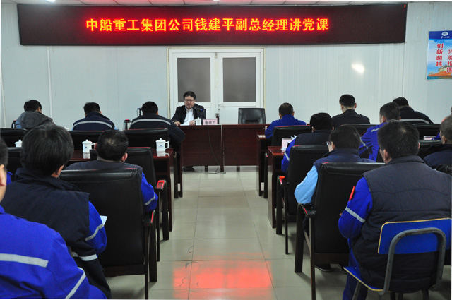 宣講會上,錢建平結(jié)合自己對黨的十九大報告的理解和體會,從深刻把握十九大報告的主題、深刻把握習(xí)近平新時代中國特色社會主義思想的豐富內(nèi)涵、深刻把握黨的十八大以來極不平凡的五年變化、深刻把握保障和改善民生、深刻把握社會主義基本矛盾發(fā)生變化、深刻把握“兩個一百年”奮斗目標(biāo)、深刻把握現(xiàn)代化的經(jīng)濟(jì)體系建設(shè)、深刻把握國防強(qiáng)軍建設(shè)、深刻把握打鐵還需自身硬等九個“深刻把握”全面解讀了十九報告精神實質(zhì)。在講到強(qiáng)軍之路,錢建平堅定的說道:“中船重工集團(tuán)承擔(dān)著海軍裝備的主責(zé),我們要不忘初心,牢記使命,海軍裝備現(xiàn)代化建設(shè)就是我們的初心和使命”。