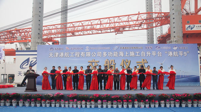 1月28日上午,目前國內(nèi)起重量最大的風電施工平臺——“港航平9”交付儀式在青島海西重機舉行,天津海洋局、天津港集團、中交機電局、風電協(xié)會、武漢船機海西重機等相關(guān)單位共同見證了這一歷史性時刻。
