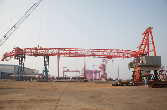 1200噸全回轉(zhuǎn)浮式起重機臂架長約103米,自重1280噸,最大起重量為1200噸,最大起升高度可達110米,主鉤允許單鉤最大偏載600噸,可以實現(xiàn)風電配件的翻身、吊裝一步到位,大大提高工作效率;吊機鋼結(jié)構(gòu)采用E690高強度鋼,使整機重量大幅減輕,實現(xiàn)整機重量與起重量比例達到1:1,整體設計、裝配焊接、精度控制技術(shù)均達到國內(nèi)先進水平。該項目采用目前國內(nèi)最大、直徑9米的整體式回轉(zhuǎn)支承,實現(xiàn)吊機360度全回轉(zhuǎn),比分體式回轉(zhuǎn)支承精度更高、運行更加平穩(wěn)。