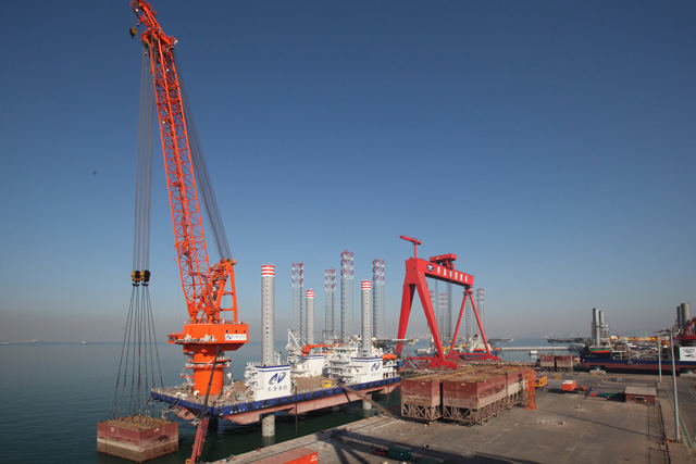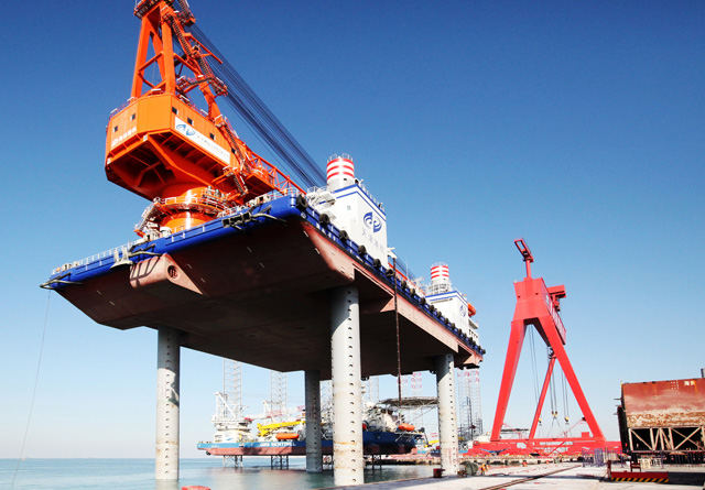 200噸全回轉(zhuǎn)浮式起重機和3400噸液壓插銷升降系統(tǒng)作為該項目核心設備,完全實現(xiàn)了自主設計和國產(chǎn)化制造。