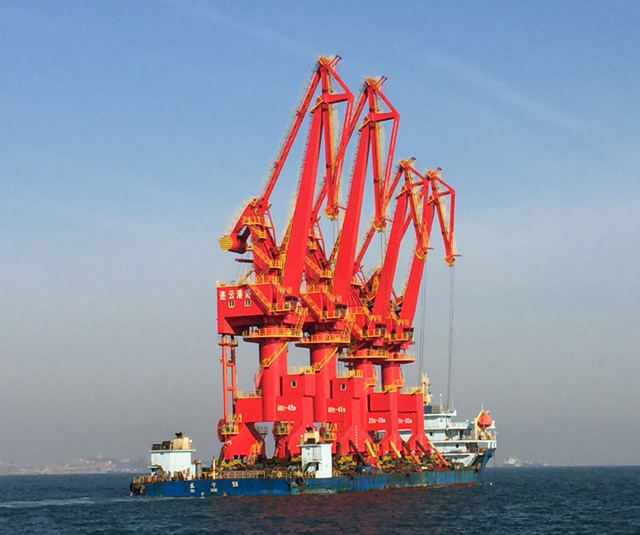 位于連云港市灌云縣的燕尾港作業(yè)區(qū)在連云港港“一體兩翼”建設框架中占有重要位置,是“以港強市”、“港產(chǎn)城”聯(lián)動發(fā)展的重要平臺,是轉(zhuǎn)型升級,提速建設東方強港,實現(xiàn)可持續(xù)發(fā)展的重要依托。這4臺門機是海西重機為連云港港燕尾港區(qū)量身打造的,分為MQ2535和MQ4045兩種型號,為抓斗、吊鉤兩用起重機,主要用于石料、紅土鎳礦、煤炭、木薯干等散雜貨裝卸作業(yè),是目前主流大型港口廣泛使用的典型門機之一。