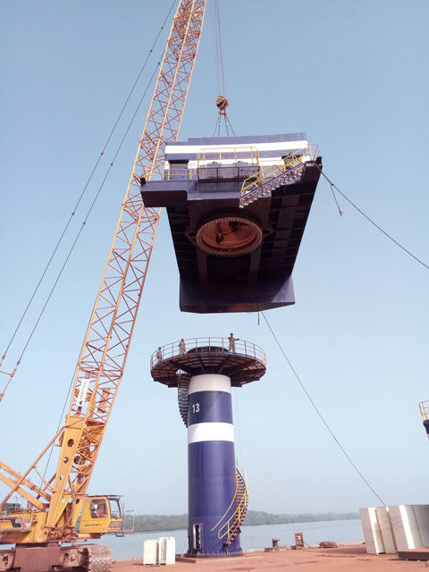 幾內(nèi)亞當?shù)貢r間4月5日上午,M27B項目55噸固定吊的最大、最重結(jié)構(gòu)件——轉(zhuǎn)盤順利吊裝完成。吊裝難點順利渡過,大家懸著的心總算落下了。算起來這是我們海西在非洲大陸上安裝的第13臺固定吊了。