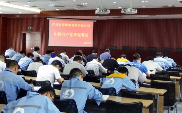 7月28日下午14點(diǎn),海西重機(jī)黨委組織公司正式黨員開展黨章考試,海西重機(jī)黨委書記、董事長鄧振山,黨委副書記、總經(jīng)理張懷志,黨委副書記、紀(jì)委書記朱聲凱,副總經(jīng)理、工會(huì)主席代振華參加了本次考試,共計(jì)120余名黨員參加了考試,預(yù)示著海西重機(jī)黨委成功組織開展逐字逐句學(xué)黨章活動(dòng)。
