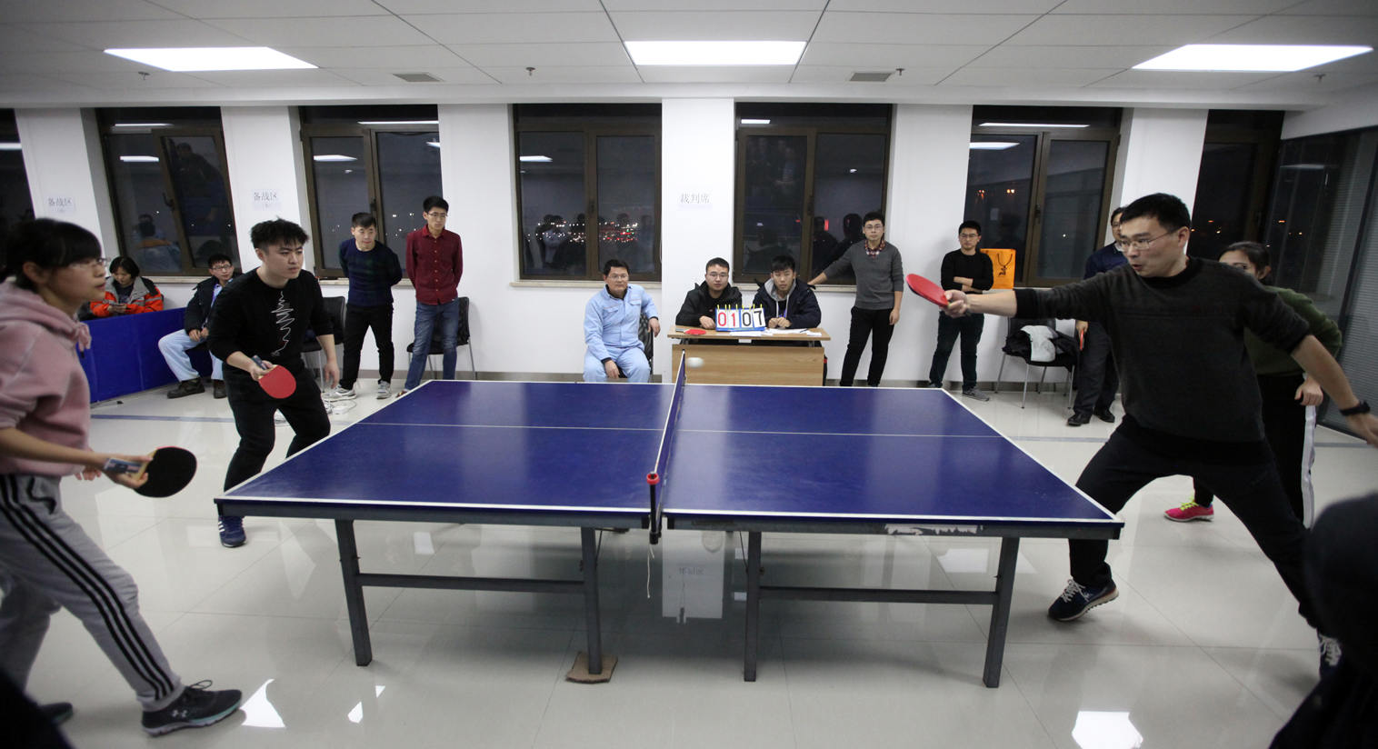 比賽分上下半?yún)^(qū),采取循環(huán)賽、三局兩勝制,分為男子單打、女子單打、男女混雙、男雙、男單進(jìn)行團(tuán)體比賽。作為“國(guó)球”,公司領(lǐng)導(dǎo)和廣大職工非常關(guān)注本次乒乓球比賽活動(dòng),廣大職工紛紛到場(chǎng)為自己支持的代表隊(duì)吶喊助威。公司總經(jīng)理張懷志、紀(jì)委書記朱聲凱、副總經(jīng)理代振華也到現(xiàn)場(chǎng)為選手鼓勁加油,并為獲獎(jiǎng)團(tuán)隊(duì)頒獎(jiǎng)。