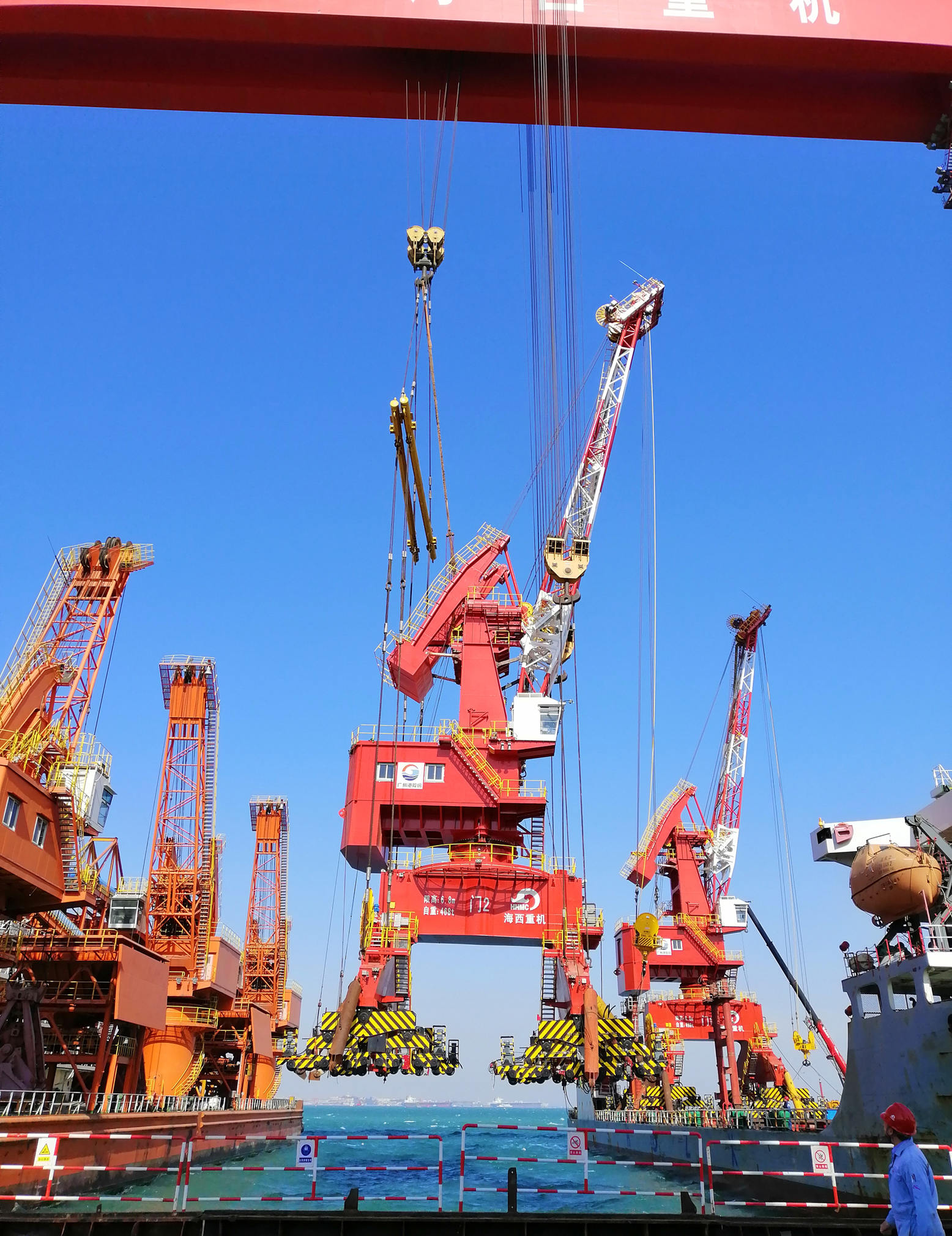 因初次起吊整機(jī)上船,船面空間緊湊,在場所有的工作人員都屏住了呼吸,時(shí)刻觀察著,現(xiàn)場除了龍門吊運(yùn)轉(zhuǎn)的轟鳴聲,就只剩下海浪拍打碼頭的聲音在耳邊回響?!耙?!落位成功!”——靜靜地關(guān)注著這一過程的我們在落位成功的那一瞬間,心底無比的振奮,澎湃的心潮久久不息。自14日下午18點(diǎn)開始吊裝前詳細(xì)的聯(lián)合檢查,確認(rèn)無誤后,20點(diǎn)正式起吊,22點(diǎn)落位完成,23點(diǎn)順利摘鉤,經(jīng)過近5個(gè)小時(shí)的忙碌作戰(zhàn),整機(jī)吊裝工作一氣呵成,效率之高著實(shí)令人驚嘆。