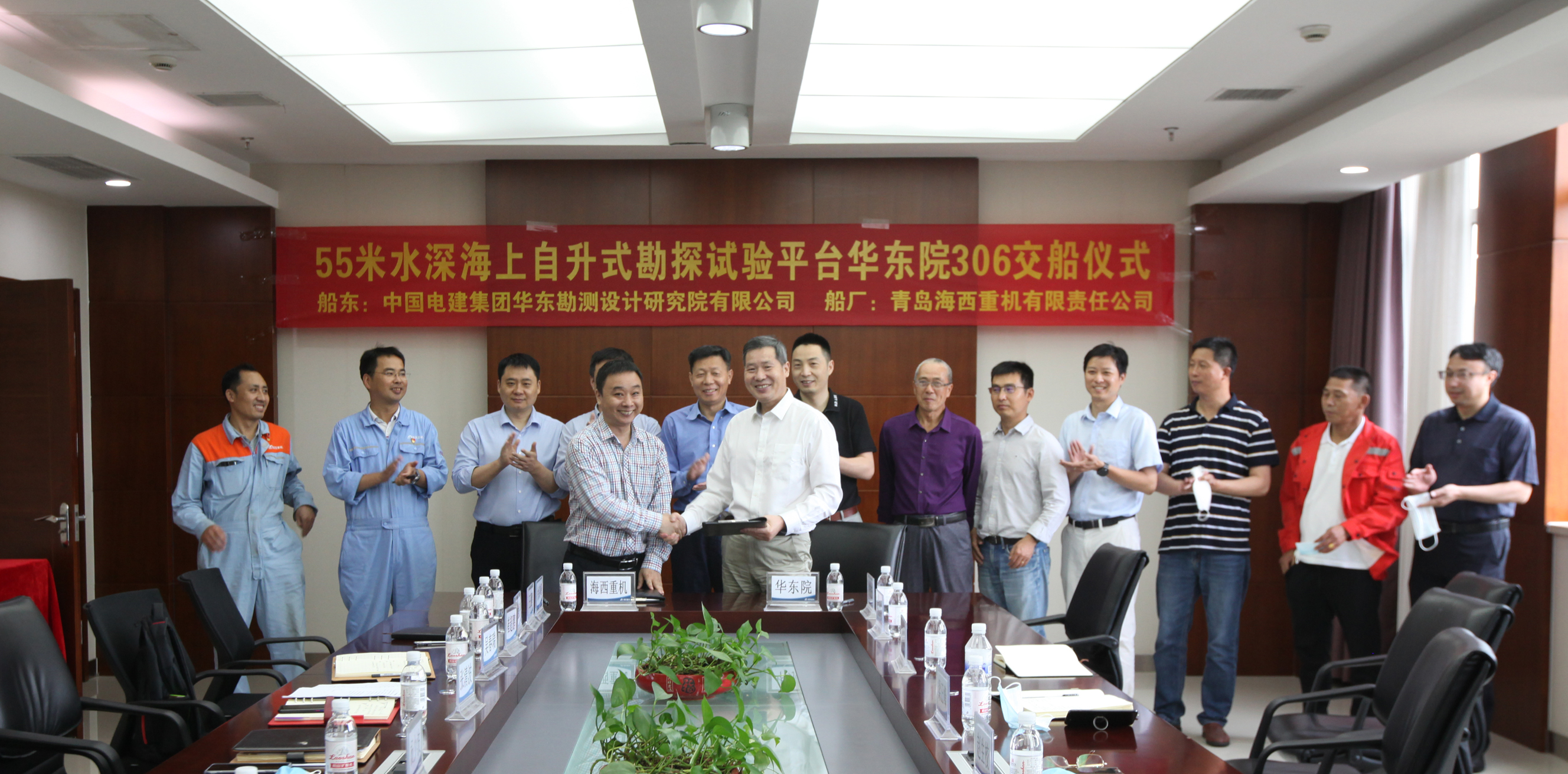 6月18日上午,華東院306自升式海上勘探平臺(tái)在武漢船機(jī)海西重機(jī)順利交付。