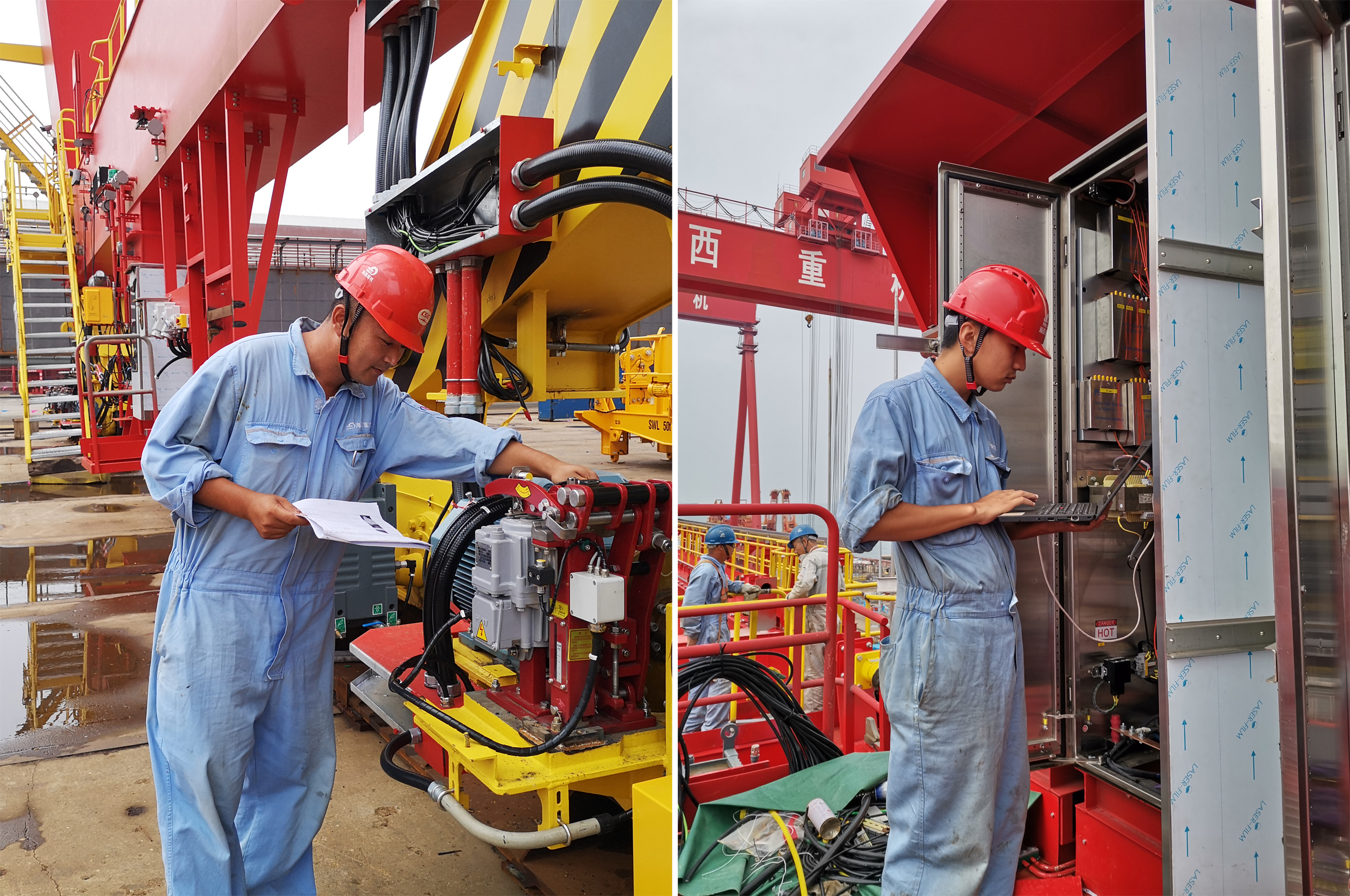 為了保障日照港集裝箱自動(dòng)化堆場(chǎng)(一期)作業(yè)100萬(wàn)標(biāo)箱儀式重大活動(dòng)的順利召開(kāi),海西重機(jī)接到用戶10臺(tái)自動(dòng)化軌道吊徽標(biāo)涂改需求后,項(xiàng)目管理部便及時(shí)安排涂裝部組織人員及準(zhǔn)備設(shè)備設(shè)施,涂裝部不等不靠,組織施工人員連夜趕往日照港現(xiàn)場(chǎng),現(xiàn)場(chǎng)負(fù)責(zé)人李春鵬帶領(lǐng)施工人員,克服工期緊、任務(wù)重、施工難度大的困難,積極發(fā)揮主觀能動(dòng)性,攻堅(jiān)克難,在確保安全、質(zhì)量前提下,連續(xù)3晚工作到后半夜,如期完成設(shè)備徽標(biāo)涂改全部工作,保障儀式順利召開(kāi)。