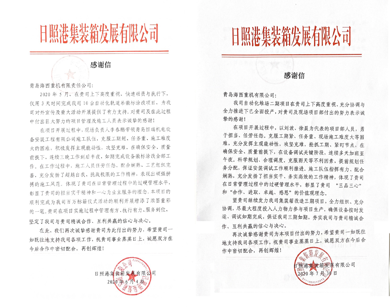 近日,中國(guó)船舶集團(tuán)旗下武漢船機(jī)海西重機(jī)公司收到兩封來(lái)自日照港集裝箱發(fā)展有限公司的感謝信,字里行間表達(dá)了對(duì)海西重機(jī)在用戶重要節(jié)點(diǎn)中勇于擔(dān)當(dāng)、積極配合、出色完成任務(wù)的表現(xiàn)和付出表示誠(chéng)摯的感謝,也充分說(shuō)明了用戶對(duì)海西重機(jī)產(chǎn)品和服務(wù)的認(rèn)可。