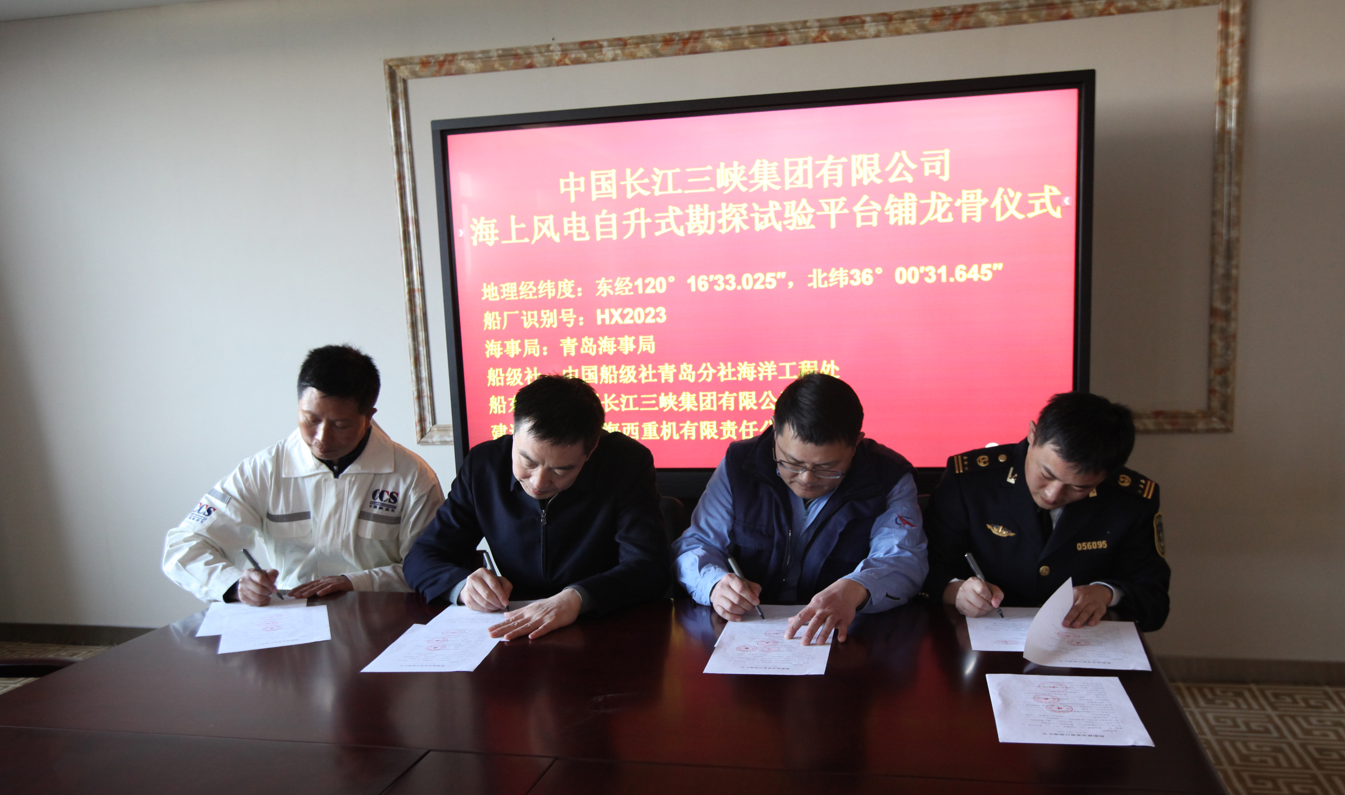 12月22日上午,在青島海事局、中國船級(jí)社青島分社、中國長江三峽集團(tuán)有限公司、中國船舶集團(tuán)旗下武漢船機(jī)海西重機(jī)各方代表共同見證下,“中國三峽101”海上風(fēng)電自升式勘探試驗(yàn)平臺(tái)順利完成鋪龍骨儀式,標(biāo)志著該項(xiàng)目正式進(jìn)入平臺(tái)搭載建造階段。