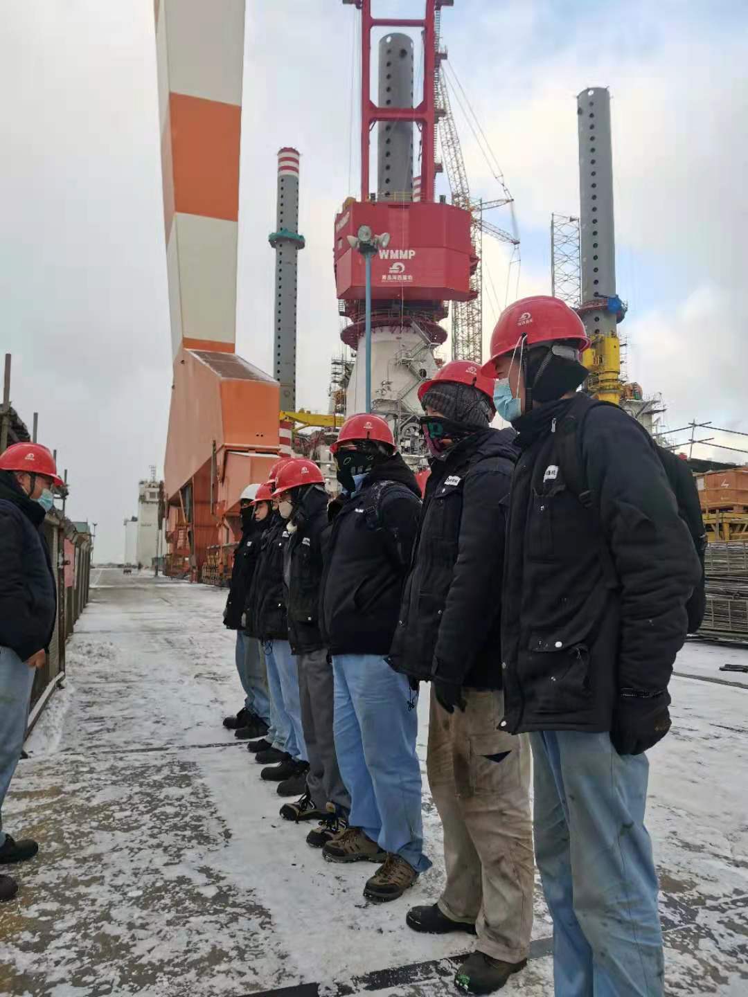 1月7日,山東經(jīng)歷了一次罕見的寒潮,煙臺下起了雪,這是第二場雪,也是我們要克服的又一個惡劣天氣,寒風里摻雜著雪,氣溫也是零下好幾度。一如既往的早班會,特意強調(diào)一下安全,然后根據(jù)現(xiàn)場情況,交代好工作,我們就整裝上陣,開始一天工作?,F(xiàn)場的問題在一個一個解決,堅定了我們的信心。我常常鼓勵大家,“咱們再辛苦辛苦,早日結(jié)束?!标犛褌円矔唵位匾痪渑牡脑?,“這都不是事,我們都想早點干完?!?/span>