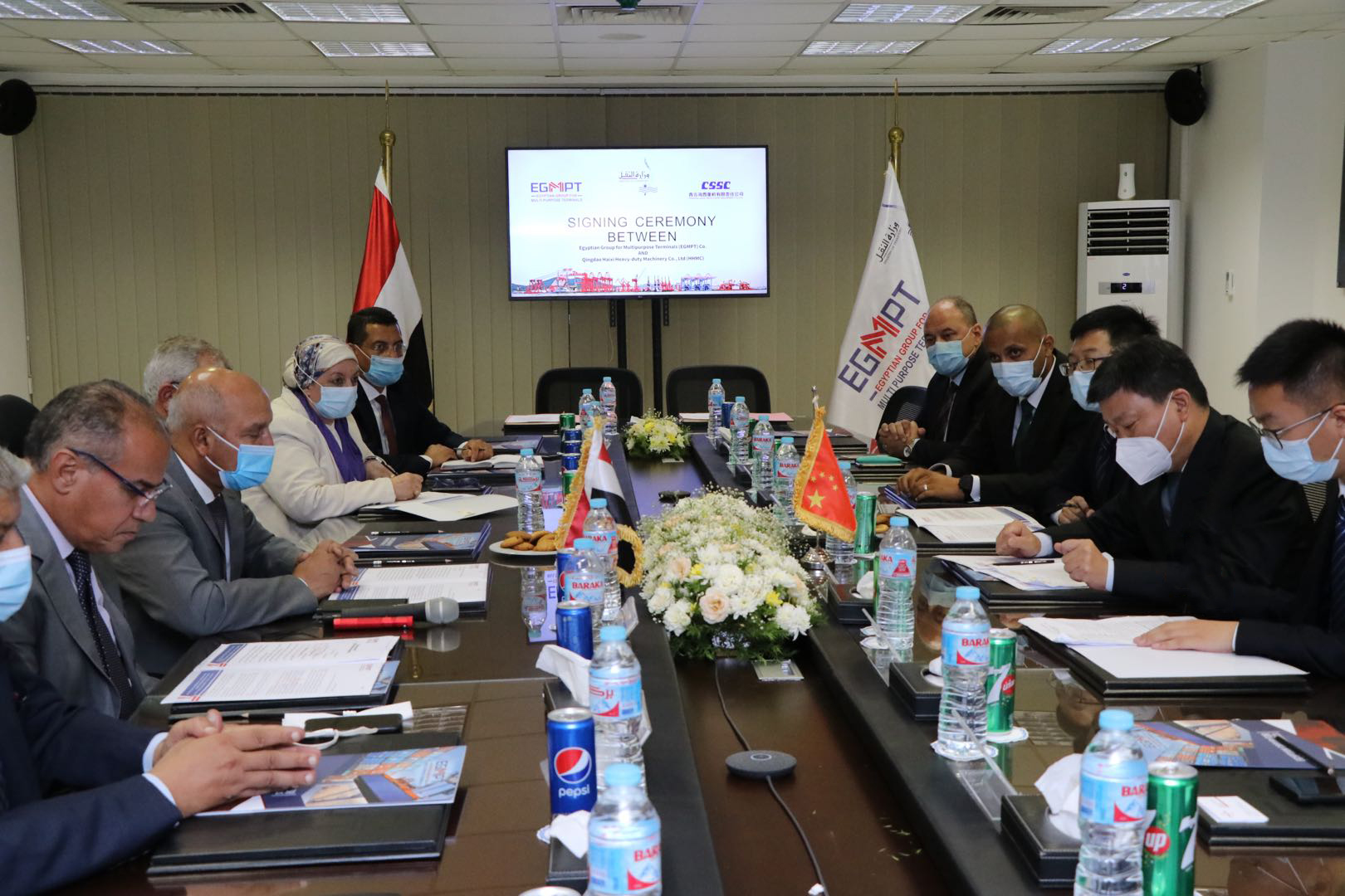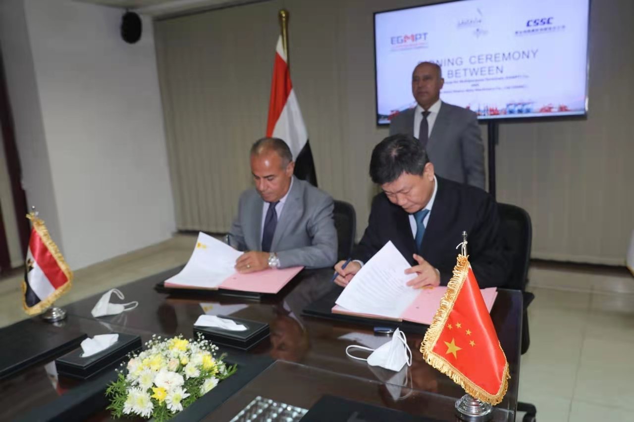 當(dāng)?shù)貢r(shí)間8月7日,中國(guó)船舶集團(tuán)旗下武漢船機(jī)海西重機(jī)公司與埃及亞歷山大港多用途碼頭簽訂批量岸橋項(xiàng)目。埃及交通部部長(zhǎng)Kamel Elwazir、多用途碼頭(EGMPT)主席Abdelkader Darwish、達(dá)飛集團(tuán)駐埃及負(fù)責(zé)人Eng.Tariq ZaghloulEGMPT技術(shù)團(tuán)隊(duì),海西重機(jī)黨委書記、董事長(zhǎng)鄧振山等出席現(xiàn)場(chǎng)簽約儀式。