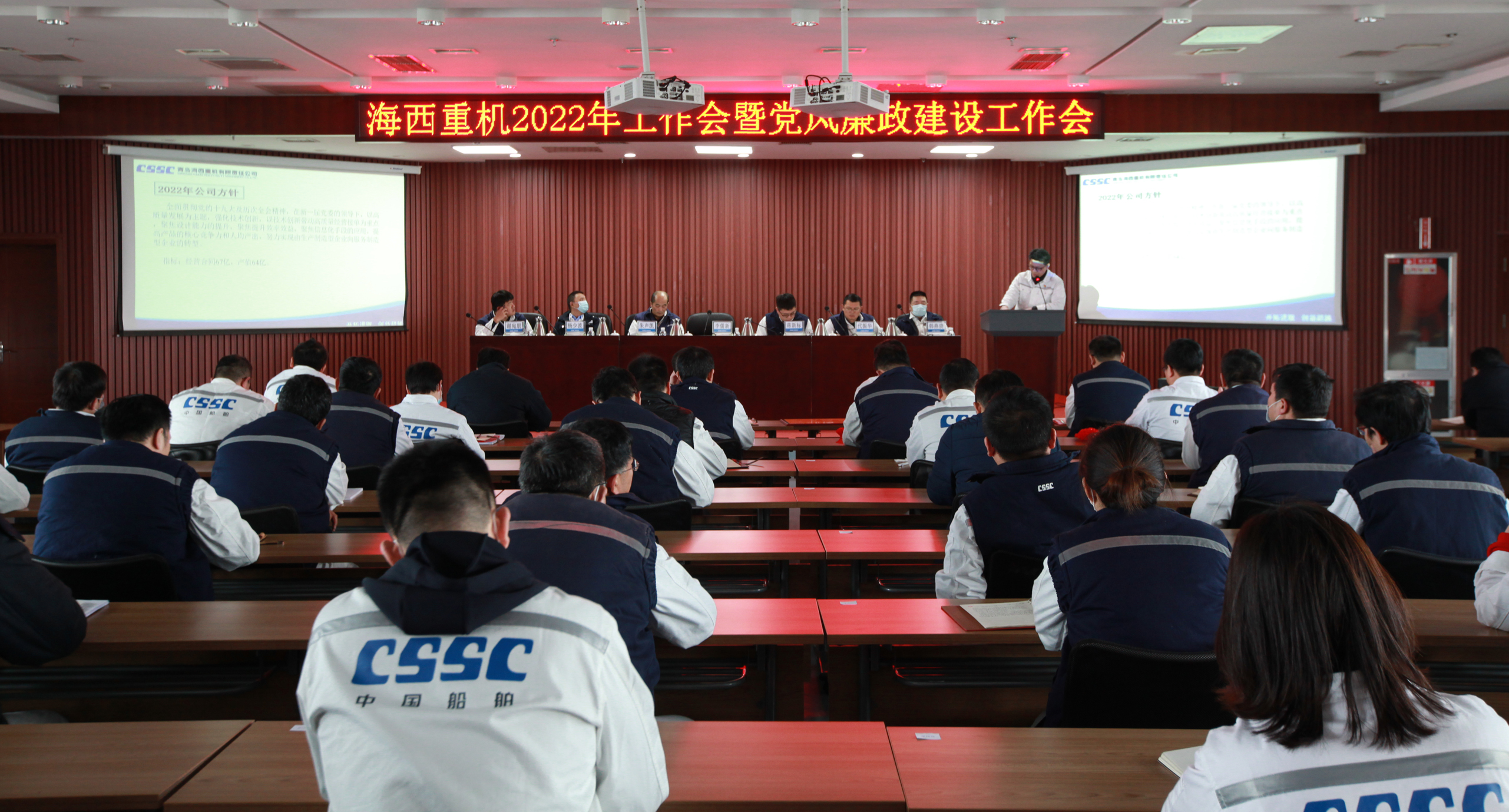 2月12日,中國船舶集團旗下武漢船機海西重機公司在901會議室召開2022年工作會暨黨風(fēng)廉政建設(shè)工作會,觀看《凝心聚力謀發(fā)展 砥礪奮進譜新篇》公司2021年度匯報片,學(xué)習(xí)傳達武漢總部2022年工作會、黨風(fēng)廉政建設(shè)工作會會議精神,總結(jié)公司2021年取得的成績,分析經(jīng)濟形勢,進一步明確2022年工作思路,并就各方面重點工作作出部署。