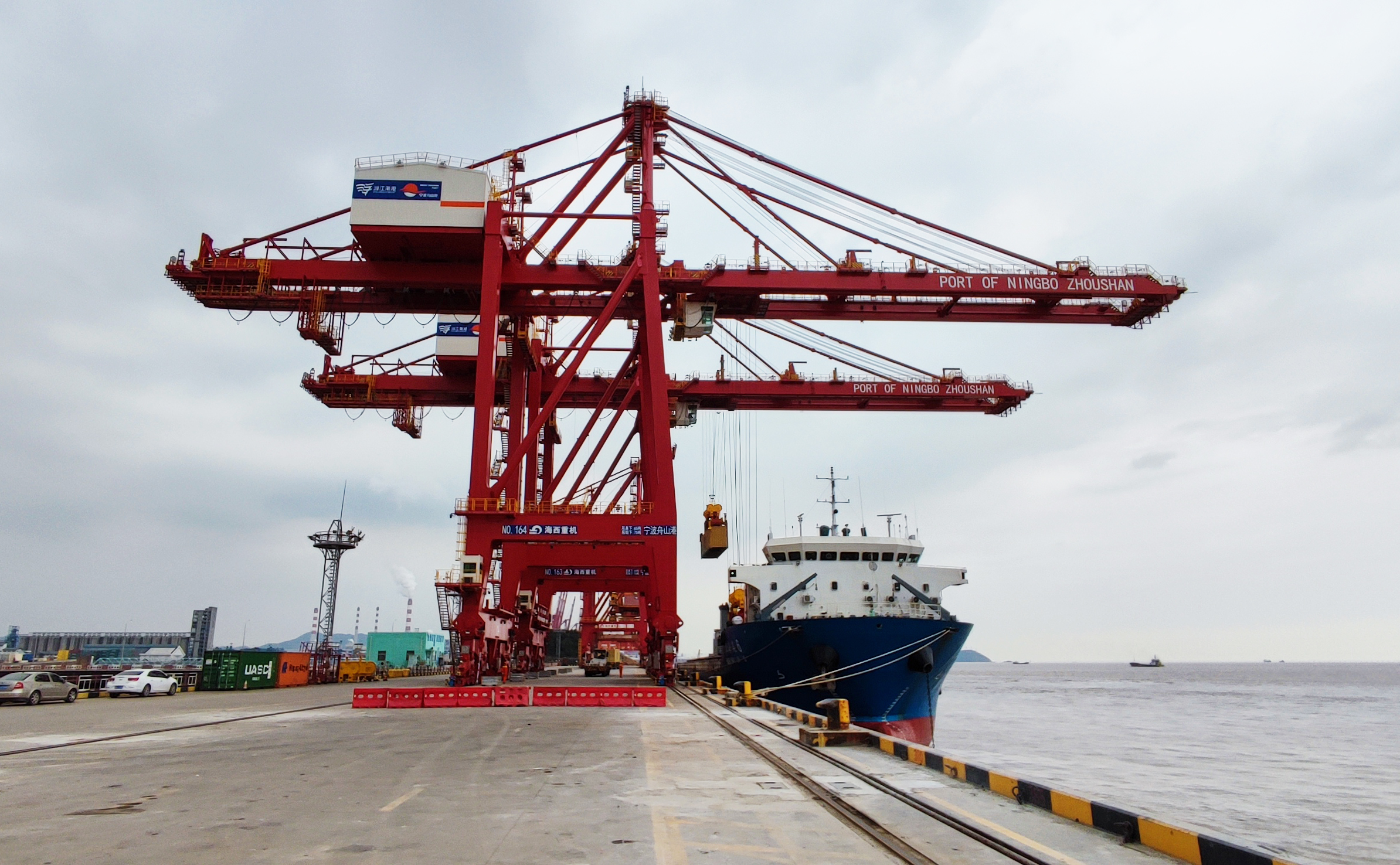 12月14日,中國船舶集團旗下武漢船機海西重機公司為寧波港物資有限公司打造的2臺65t-45m岸橋在寧波舟山港北侖山多用途碼頭順利交機。