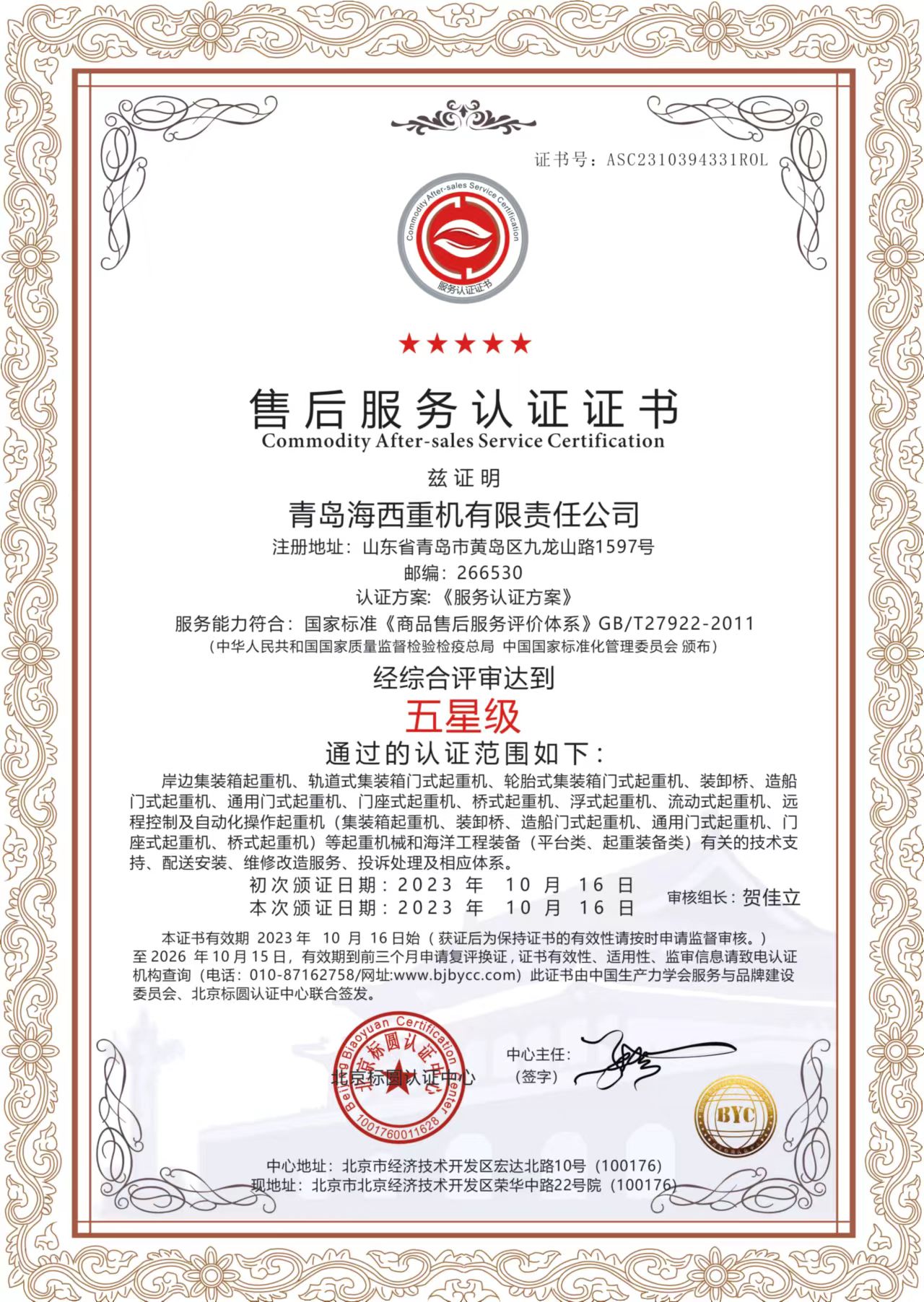 近日,中國船舶集團(tuán)旗下武漢船機(jī)海西重機(jī)公司售后服務(wù)通過中國生產(chǎn)力學(xué)會(huì)服務(wù)與品牌建設(shè)委員會(huì)、北京標(biāo)圓認(rèn)證中心聯(lián)合認(rèn)證,榮獲五星級(jí)認(rèn)證證書。這一認(rèn)證的獲得,不僅僅是對(duì)海西重機(jī)售后服務(wù)成果的認(rèn)可,更是對(duì)海西重機(jī)致力于提供優(yōu)質(zhì)服務(wù)能力的肯定。