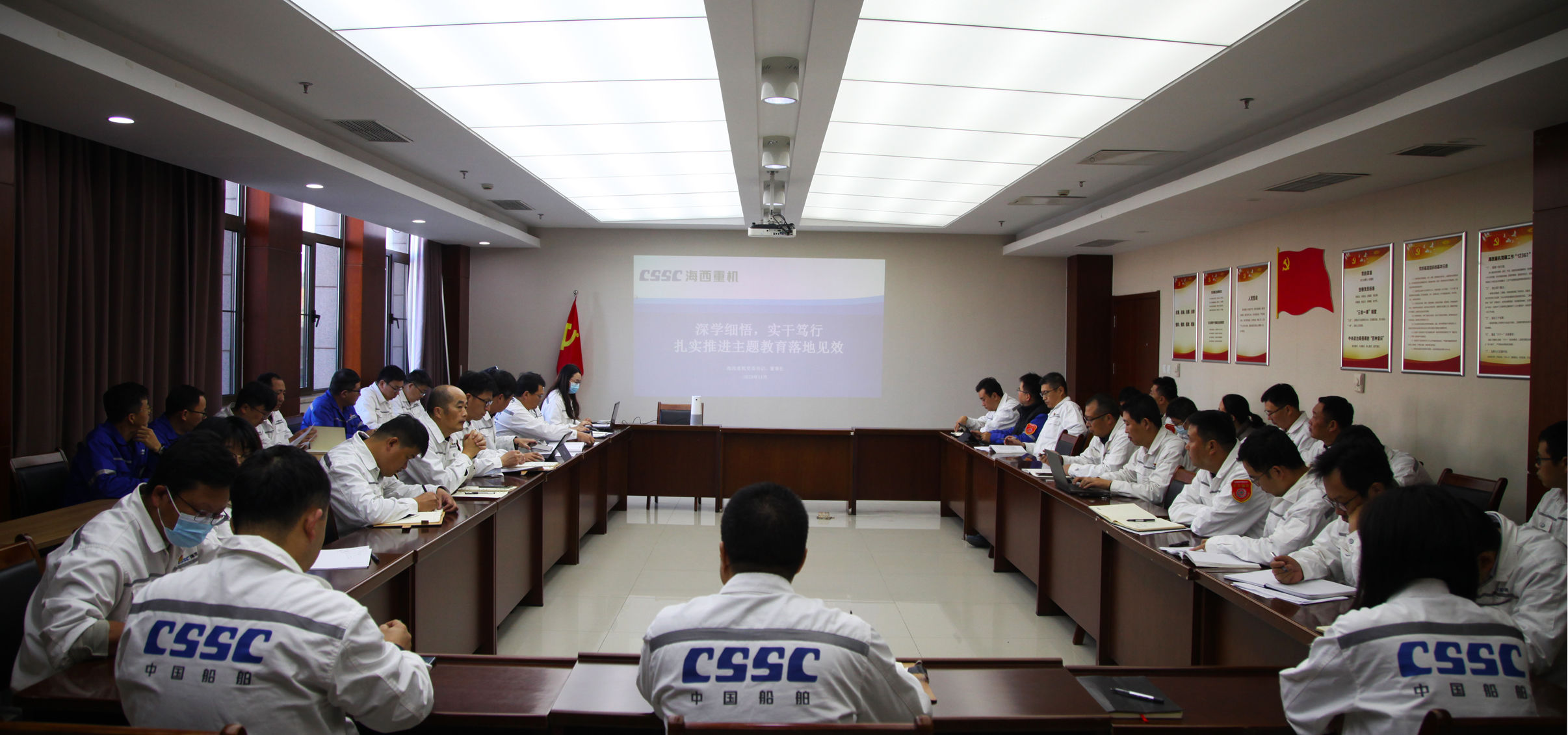 11月6日,中國船舶集團(tuán)旗下武漢船機(jī)海西重機(jī)公司黨委書記、董事長李儒新為中層以上管理人員講授“深學(xué)細(xì)悟,實干篤行扎實推進(jìn)主題教育落地見效”主題教育專題黨課。
