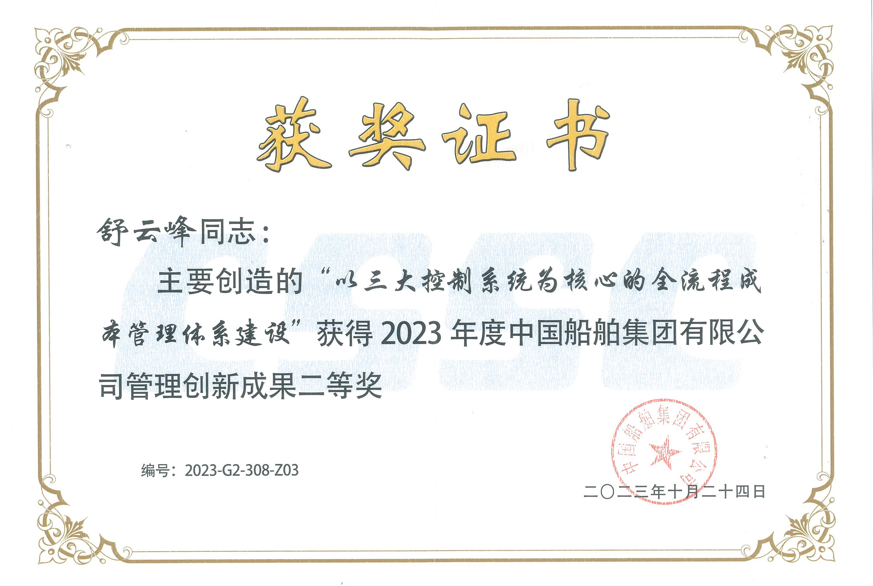 近日,集團公司傳來喜訊,海西重機“以三大控制系統(tǒng)為核心的全流程成本管理體系建設”管理創(chuàng)新成果榮獲中國船舶集團2023年度管理創(chuàng)新成果二等獎。