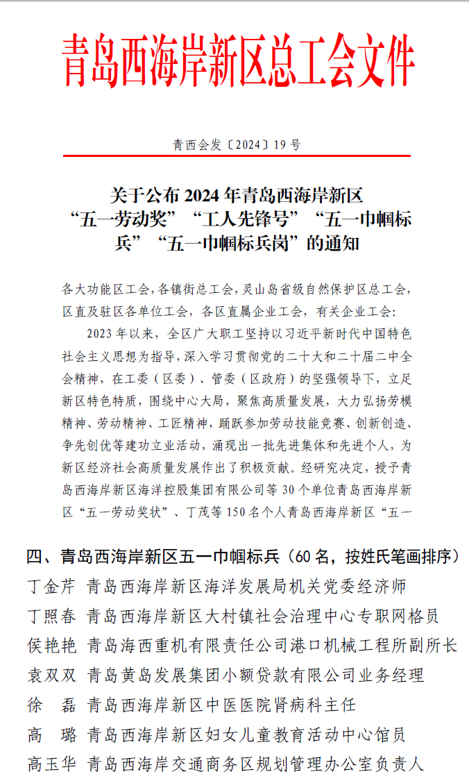 柔肩擔(dān)使命,巾幗綻芳華——侯艷艷榮獲青島西海岸新區(qū)“五一巾幗標(biāo)兵”榮譽(yù)稱號