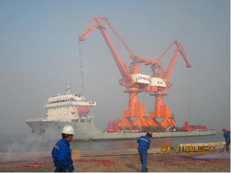 11月30日,我司為中國華能董家口港制造的2臺MQ4040門座起重機順利滾裝上船,為華能集團5+3.5萬噸級通用碼頭年底實現(xiàn)試運營創(chuàng)造了基礎(chǔ)條件。這兩臺門機是青島董家口港開建以來的首批到港的大型設(shè)備,也是公司搶占董家口港區(qū)的重要標志。為后續(xù)4臺MQ2538門座起重機的制造打下了堅實的基礎(chǔ)。