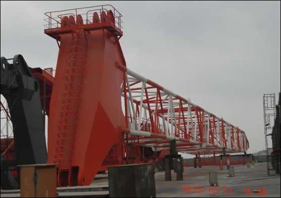 科研43A是我公司為江蘇南通韓通船舶重工有限公司生產(chǎn)的250T-30m風(fēng)車安裝船用回轉(zhuǎn)起重機(jī),整機(jī)重約為650T。這是我公司第一次生產(chǎn)海工產(chǎn)品,設(shè)計(jì)難度大,技術(shù)要求高,施工過程中出現(xiàn)問題多,而且工期要求緊。從一開始制作公司領(lǐng)導(dǎo)就極為重視,專門成立了以副總經(jīng)理為組長的生產(chǎn)小組,對(duì)生產(chǎn)中出現(xiàn)的問題盡量簡(jiǎn)化程序,以最快的速度予以解決。目前,我公司負(fù)責(zé)生產(chǎn)的科研43A各部套結(jié)構(gòu)件已順利制作完成,通過業(yè)主驗(yàn)收,已達(dá)到發(fā)運(yùn)條件。