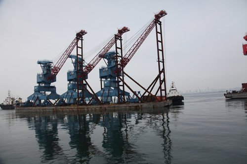 2012年8月17日,3臺單臂架門座式起重機(型號:MQ25t-35m)離開我司碼頭,駛向印尼第二港務集團公司。