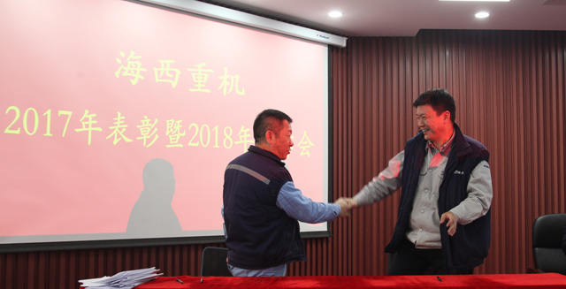 會(huì)議簽署了海西重機(jī)2018年方針目標(biāo),確定了“全面貫徹黨的十九大精神,以高質(zhì)量發(fā)展為中心,以提質(zhì)增效為重點(diǎn),聚焦產(chǎn)品的提檔升級(jí),提高企業(yè)競(jìng)爭(zhēng)力,實(shí)現(xiàn)由生產(chǎn)型制造企業(yè)向服務(wù)型制造企業(yè)的轉(zhuǎn)型”的年度總方針,明確了新一年發(fā)展的目標(biāo)任務(wù)。會(huì)議組織簽署了《黨風(fēng)廉政建設(shè)責(zé)任書(shū)》,明確了公司領(lǐng)導(dǎo)班子及各部門領(lǐng)導(dǎo)班子在黨風(fēng)廉潔建設(shè)中的責(zé)任與目標(biāo)。會(huì)議表彰了公司2017年生產(chǎn)經(jīng)營(yíng)發(fā)展中涌現(xiàn)出的5名“優(yōu)秀管理者”及50名“優(yōu)秀員工”。