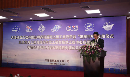 1月28日上午,目前國內(nèi)起重量最大的風電施工平臺——“港航平9”交付儀式在青島海西重機舉行,天津海洋局、天津港集團、中交機電局、風電協(xié)會、武漢船機海西重機等相關(guān)單位共同見證了這一歷史性時刻。