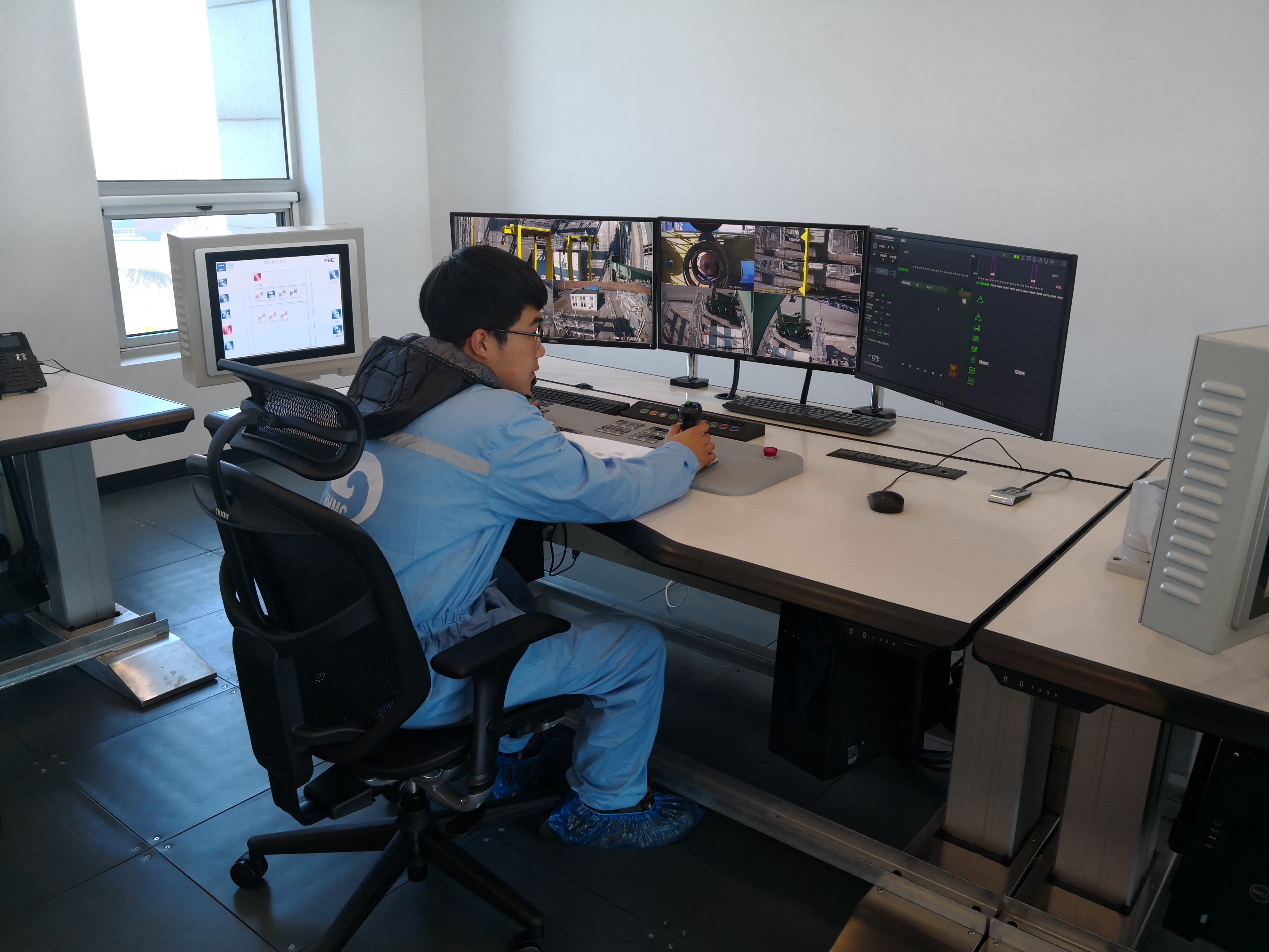 2019年的1月中旬,天津港太平洋碼頭空無一人,經(jīng)過自動化改造后的2臺場橋(RTG)正在有條不紊地作業(yè)。“操縱”這一切的司機(jī),遠(yuǎn)在中控室,而這2臺設(shè)備全部由一人控制。改造后的設(shè)備,操作更為舒適與安全,通過遠(yuǎn)程操控,設(shè)備司機(jī)師傅可遠(yuǎn)程操作多臺RTG進(jìn)行生產(chǎn)作業(yè),改變了過去工作環(huán)境惡劣的狀況。