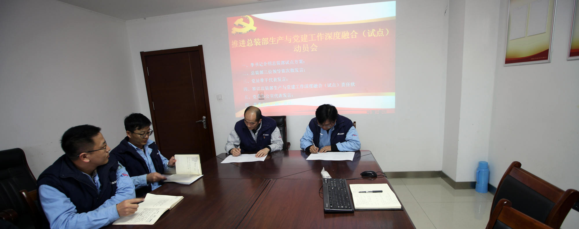 最后,朱聲凱希望總裝部忠實踐行責(zé)任書和公開承諾,讓黨旗在總裝部生產(chǎn)現(xiàn)場高高飄揚,讓黨徽在總裝部項目上閃閃發(fā)光,爭做公司2019年度“三大變革”的先行者。