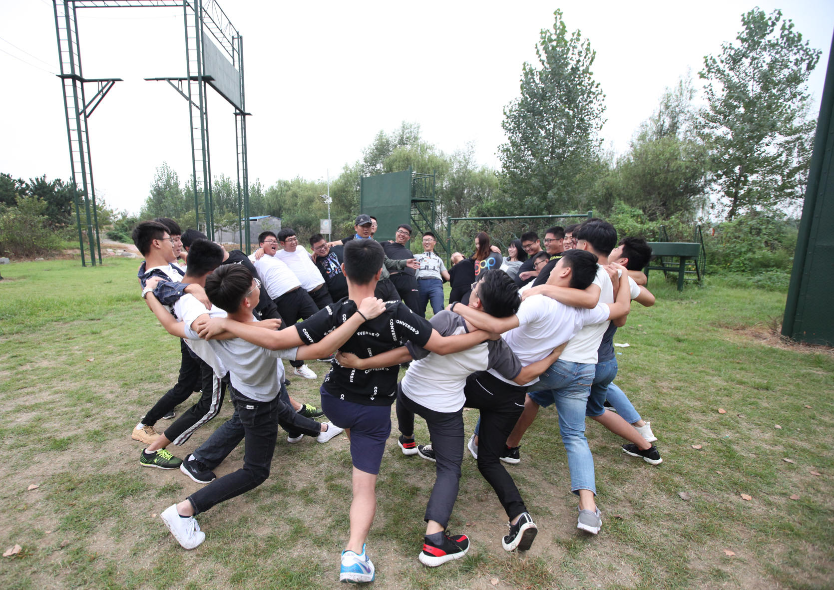 活動過程中,隊(duì)員們齊心協(xié)力,團(tuán)結(jié)一致,鍥而不舍,共同面對各種高難度挑戰(zhàn),成功將大家認(rèn)為的“不可能”變成“可能”。穿越電網(wǎng)項(xiàng)目,隊(duì)員們需要在不碰觸繩網(wǎng)的條件下全體穿越繩網(wǎng),這個項(xiàng)目讓隊(duì)員們深刻體會到,大家要抱成一團(tuán),團(tuán)結(jié)一致,同時要具備必勝的信念才能走得更高更遠(yuǎn)。高空斷橋項(xiàng)目,隊(duì)員們需要獨(dú)立跨越高空斷橋,這是一個挑戰(zhàn),簡單的一步,是艱難的一步,跨越之后,便是戰(zhàn)勝自己。挑戰(zhàn)150秒項(xiàng)目,隊(duì)員們需要在150秒內(nèi)完成五個項(xiàng)目:不倒森林、珠行萬里、擊鼓顛球、一圈到底、激情節(jié)拍,所有的游戲都需要默契的團(tuán)隊(duì)合作,其中一圈到底更是需要一定的創(chuàng)新能力,需要打破常規(guī),不斷創(chuàng)新才能完成挑戰(zhàn),隊(duì)員們在項(xiàng)目過程中為了團(tuán)隊(duì)努力做到不失誤,這個項(xiàng)目提高了團(tuán)體凝聚力,榮耀屬于整個集體。