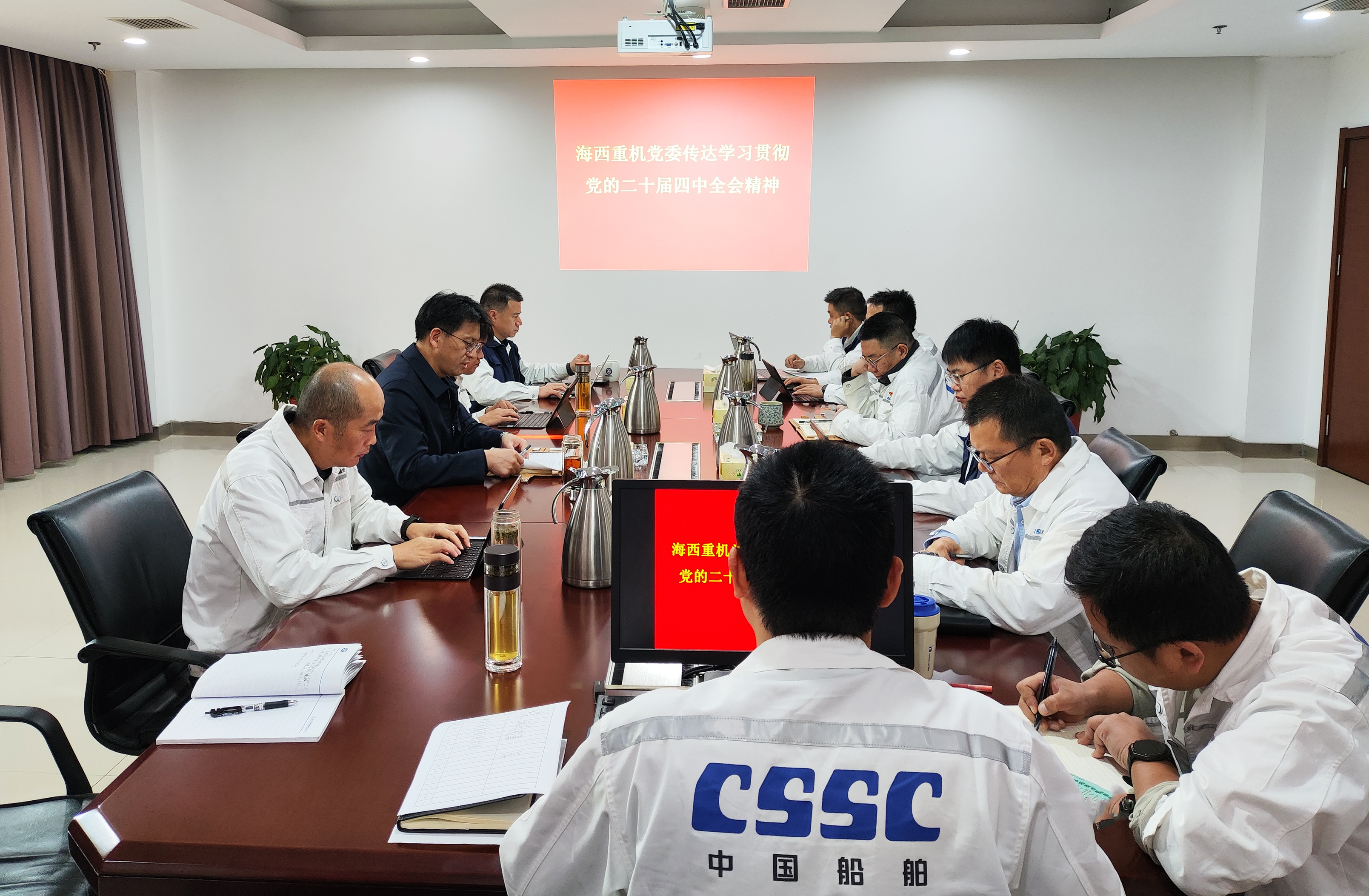 11月1日,海西重機(jī)黨委召開黨委(擴(kuò)大)會(huì)議,認(rèn)真?zhèn)鬟_(dá)學(xué)習(xí)習(xí)近平總書記在黨的二十屆四中全會(huì)上的重要講話精神和全會(huì)文件。公司黨委書記、董事長(zhǎng)李儒新主持會(huì)議。